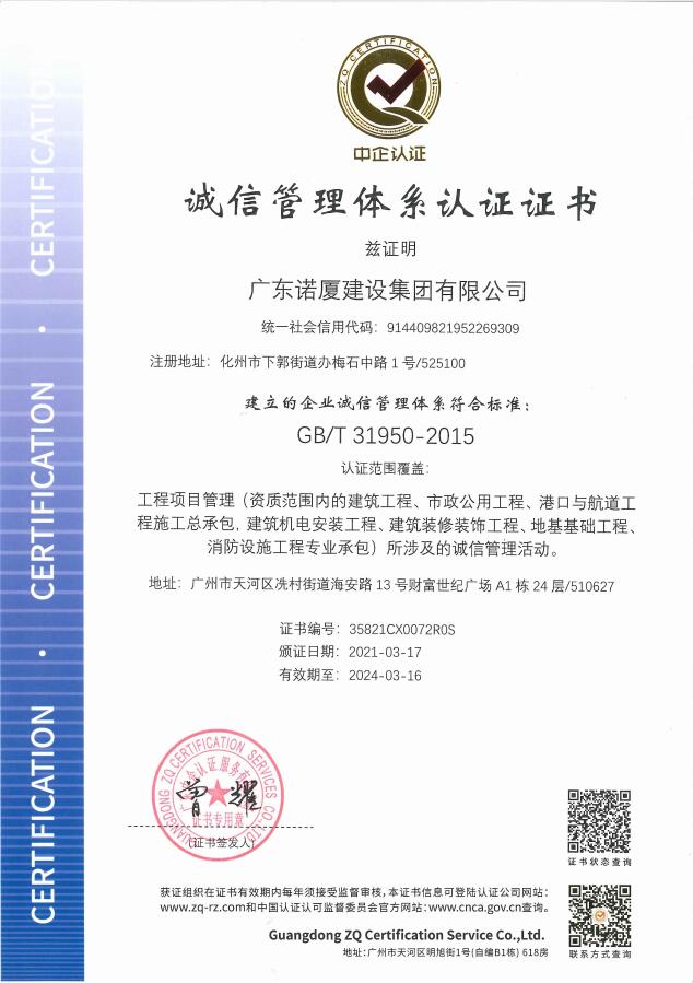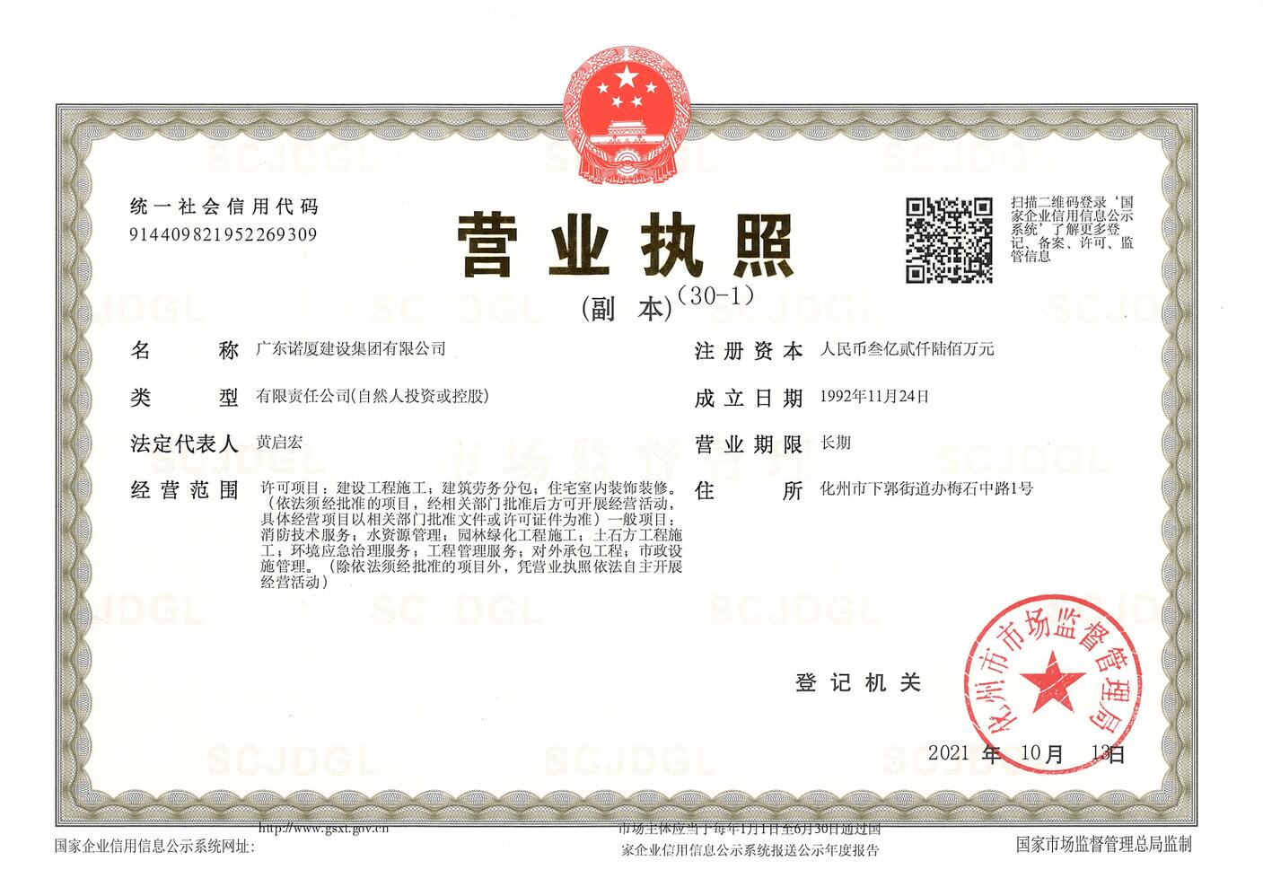 廣東諾廈建設(shè)集團(tuán)有限公司是諾廈集團(tuán)的核心企業(yè),具備國家房屋建筑工程施工總承包壹級(jí)、市政工程施工總承包壹級(jí)、港口與航道工程總承包、建筑裝修裝飾工程、消防設(shè)施工程、地基基礎(chǔ)工程、機(jī)電設(shè)備安裝工程、體育場地設(shè)施工程、建筑智能化工程、河湖整治工程、水利水電工程等資質(zhì)。......